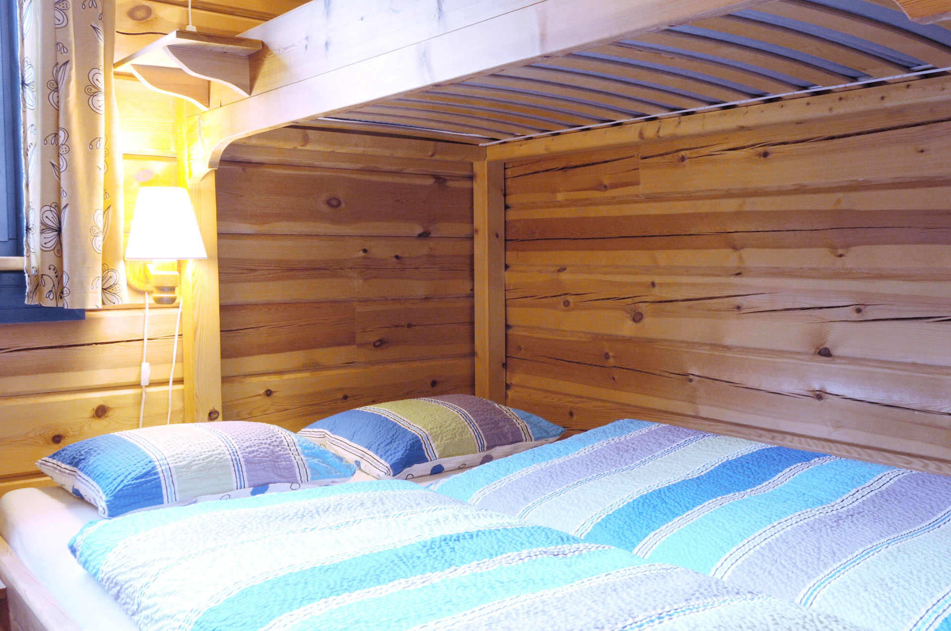 Das Blockhaus "Ull" hat eine Wohnfläche von 50 qm und ist sehr gut für 4 bis maximal 5 Personen geeignet. Das Haus hat 2 getrennte Schlafzimmer sowie ein modernes großes Badezimmer. Die komfortable Wohnküche ist voll ausgestattet und an den Essbereich mit Kaminofen angegliedert.