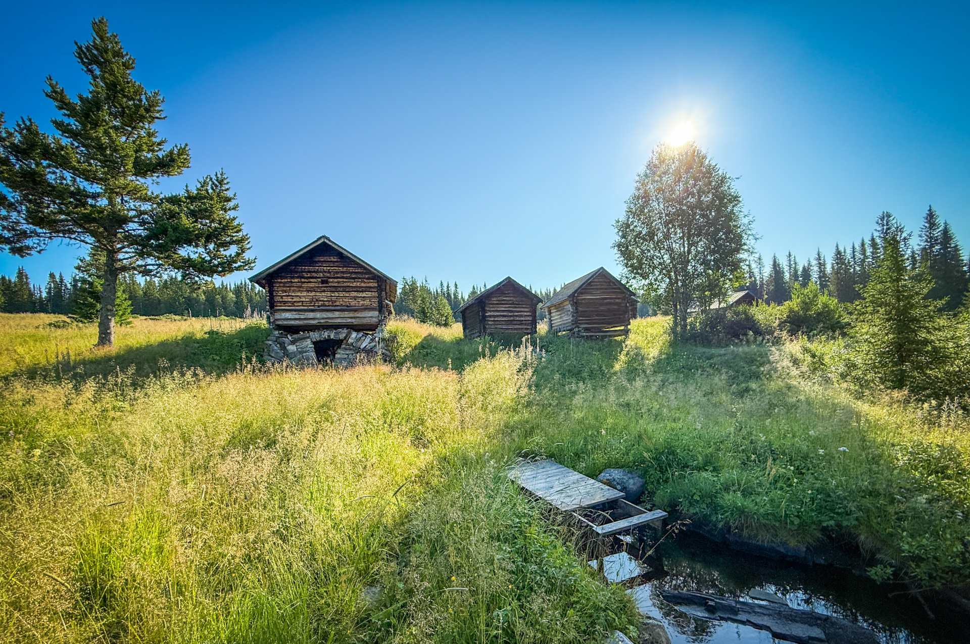 Mehrere Almen erreichen Sie ebenfalls direkt von uns aus. Manche kann man über die kaum befahrene Straße, den Fäbodvägen (Almenweg) in 2 km bis 9 km (hin und zurück) erreichen. Oft grasen auf den saftigen Almwiesen Rentiere oder in den frühen Morgenstunden auch mal ein Elch. Zu den Almen Nybodarna sind es mit 11 km bzw. nach Valskaftet mit 14 km hin und zurück schon etwas weitere Wanderungen, die sich aber lohnen.